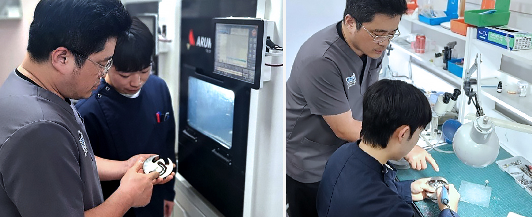 김은 대표원장이 운영하는 치과 내부에서 오랜 세월 협업해온 기공사들이